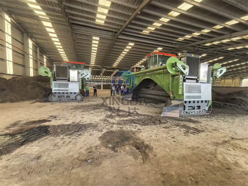 使用现场:完成安装后5米宽的液压履带覆膜翻抛机正在试机