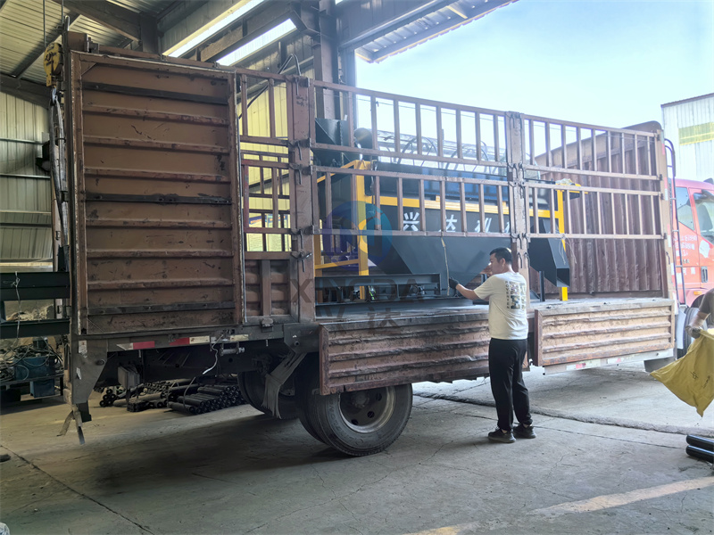 1003型有机肥筛分机与其他有机肥设备一起装车准备发货:滚筒有机肥筛分机是整套有机肥生产线中的一款有机肥筛分设备,是有机肥生产中的常用设备,在有机肥生产线中担当起到筛分物料的作用。滚筒筛分机是继电动振动筛,国内各大公司生产的普通型网状滚筒筛之后的又一代新型自清式筛料专用设备,它广泛适用于粒径小于300mm以下各种固体物料的筛分,具有筛分效率高、噪音低、扬尘量小、使用寿命长、维修量小、检修方便等诸多特点。