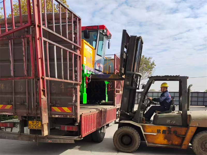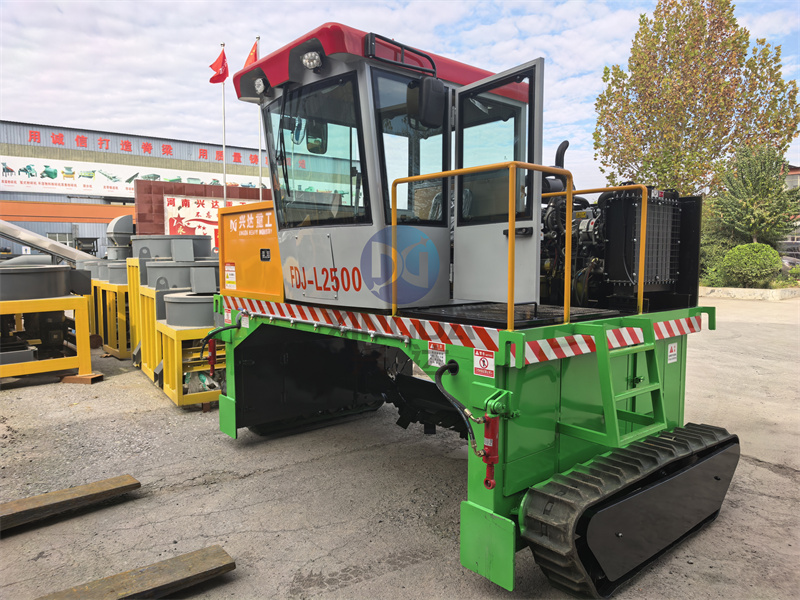 发货许昌:2500型加工好的有机肥履带翻抛设备正在装车:履带翻抛机是整套有机肥生产线中的一款有机肥翻堆设备。在有机肥生产线中担当起到翻抛物料的作用。 履带式翻堆机,水分大的物料原地不会打滑,爬窝现象,终身不会更换轮胎.拉杆操作原地180°转弯调头,淘汰了方向盘式原地无法调头的烦恼,节省场地,人工柴油,国内新型产品.