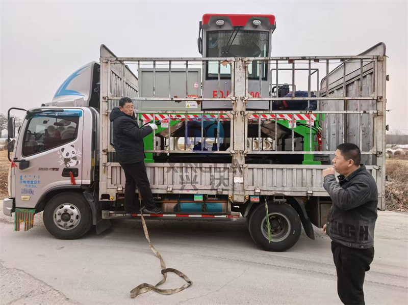 启航发往南昌的2500型有机肥履带翻抛设备准备出厂:有机肥履带翻堆机是一种专门用于处理和翻动有机肥料的机械设备,其主要功能是通过履带驱动系统,将堆积的有机肥料进行翻动、搅拌,以促进其发酵过程。这种设备通常配备有搅拌装置,能够均匀地混合有机物料,提高发酵效率,减少臭气排放。此外,履带式设计使其能够在各种地形条件下灵活移动,适用于大规模农场和有机肥料生产厂。有机肥履带翻堆机不仅提高了工作效率,还减少了人工劳动强度,是现代农业中不可或缺的重要设备之一。