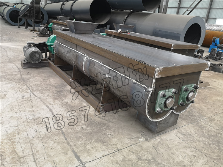 糠醛渣双轴搅拌机利用两根呈对称状的螺旋轴的同步旋转,糠醛渣双轴搅拌机内装有旋转反向的浆叶,浆叶成一定角度将物料沿轴向、径向循环翻搅,使物料迅速混合均匀。由电机通过皮带传动到减速机带动轴旋转。轴的速度与桨叶的结构会使物料重力减弱,随着重力的缺乏,各物料存在的颗粒大小、比重悬殊的差异在混合过程中被忽略。