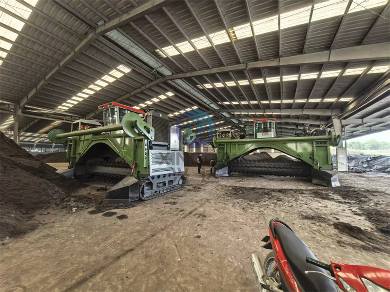 使用现场:完成安装后5米宽的液压履带覆膜翻抛机正在试机